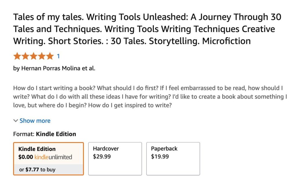 palabras clave: amor por la escritura, cuentos en espanol, herramientas narrativas, antologia creativa, Hernan Porras Molina, libro en Inglaterra, escritura autodidacta, cuentos con tecnica, lectura formativa, narrativa hispana