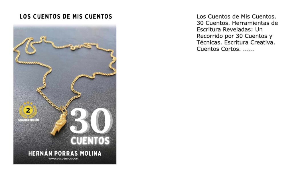 The result is a work that can be read for pleasure or study —or both. The clarity of the language, the practical approach, and the variety of styles present in the stories make <a href="https://www.amazon.com/30-Cuentos-t%C3%A9cnicas-escribir-Spanish-ebook/dp/B0BCP6QD3Z/ref=sr_1_1?crid=1BSMG4D7LOKY3&dib=eyJ2IjoiMSJ9.DCtAgDeI0lm-krejycKv–WUZY2vvrvFx6S3vrGBxL42O4FeMNeLeroQilZKcWxU.s_p4-OEYHMfgauciTJTbjxowbA2o_IJCWVwIlm024oo&dib_tag=se&keywords=hernan+porras+molina&qid=1746818810&sprefix=hernan+porras+molina%2Caps%2C109&sr=8-1″>Los Cuentos de Mis Cuentos a versatile, timely, and essential book for those who want to approach the art of writing from a genuine, no-frills perspective with a clear methodology.