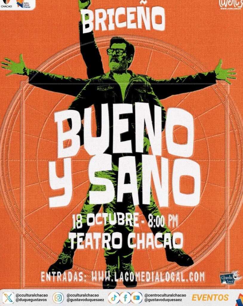 Las entradas para disfrutar del show de humor “Bueno y Sano” del Profesor Briceño, que se presentará el sábado 18 de octubre en el Centro Cultural Chacao, ya están a la venta a través de www.lacomedialocal.com y en las taquillas del Teatro